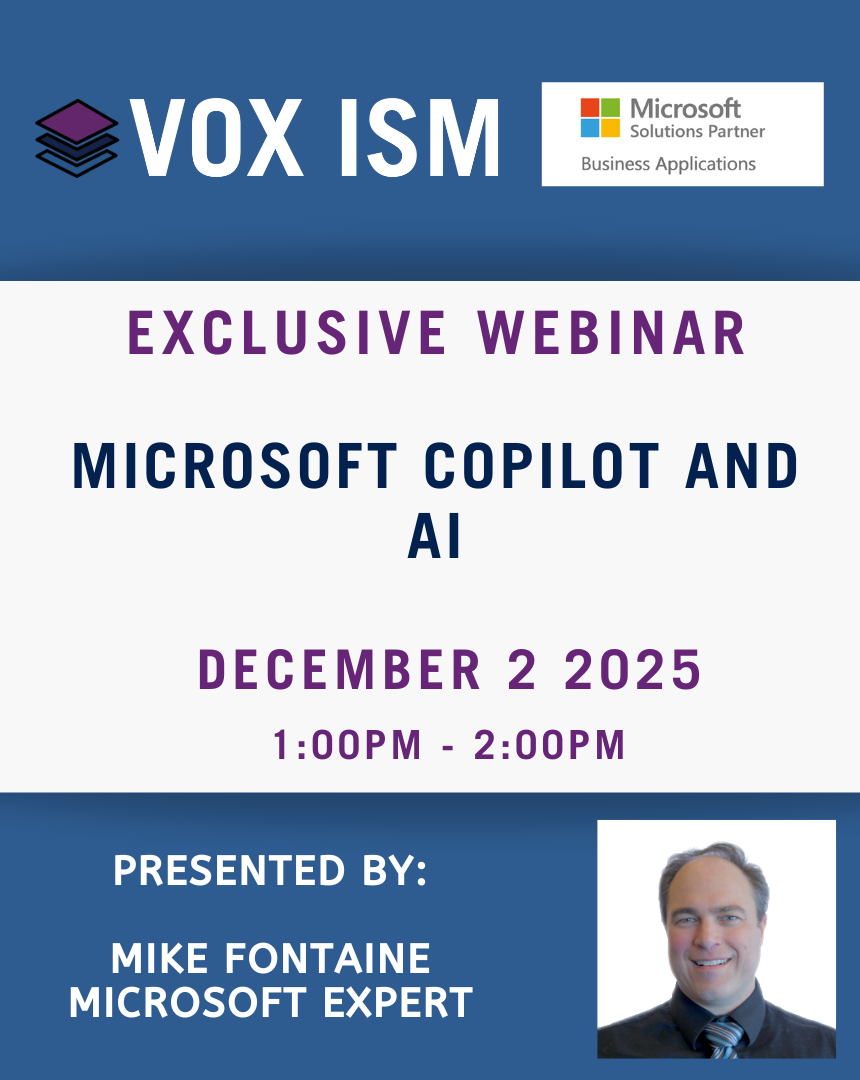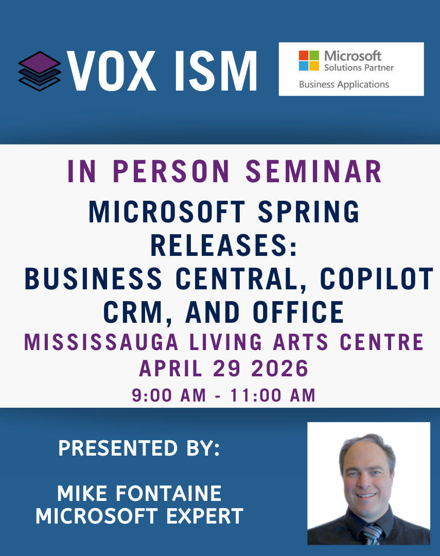 VOX ISM is the #1 Microsoft Solutions Partner in Canada for Business Applications. VOX ISM specializes in implementing Dynamics 365 Business Central, Dynamics 365 CRM, and Microsoft 365 (formally Office 365)