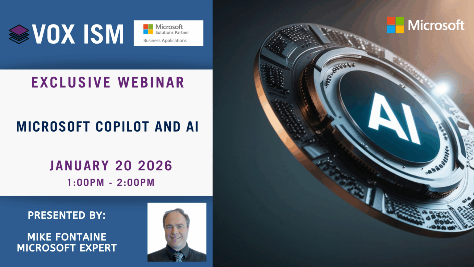 Explore how Microsoft Copilot and artificial intelligence are transforming the way businesses operate. In this session, we’ll cover practical applications, benefits, and best practices for integrating Copilot and AI into your daily workflows. Whether you’re an accountant, sales professional, or business leader, discover actionable insights to boost productivity and unlock new opportunities with AI-powered solutions.