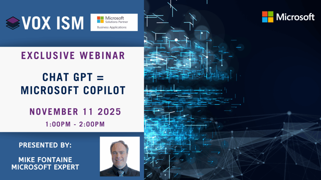 Request your copy: Chat GPT = Microsoft Copilot Fill out the form below and we will email you an archived copy This field is hidden when viewing the formTitleYour name(Required) First Last Your email(Required) Best number to reach you at(Required)Company Name(Required)Industry(Required)Select OneAgricultureEducationDistributionFinancial servicesGovernmentHealthManufacturingProfessional servicesRetailOtherYour Industry - Please Specify(Required)This field is hidden when viewing the formPDFThis field is hidden when viewing the formVideoWhat format would you like?(Required) PDF Video PDF and Video Newsletter Sign me up for the Vox ISM newsletter This field is hidden when viewing the formVideo Password Δ